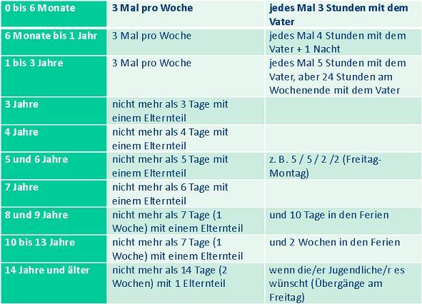 Am Kindeswohl orientierte wissenschaftliche Untersuchungen haben deutliche Ergebnisse gebracht, die ganz andere und differenziertere Mindest-Umgangszeiten und Mindest-Umgangshäufigkeiten nennen, die klar vom Alter der Kinder abhängen.